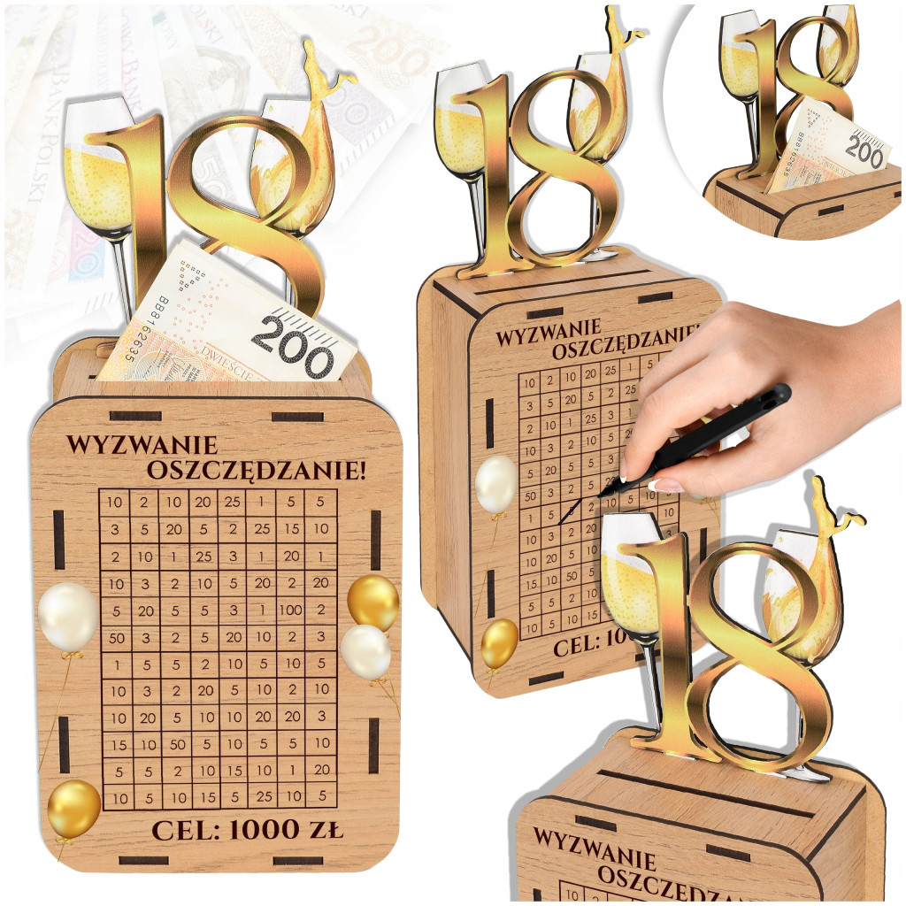 ✅ Zestaw: skarbonka z wkładaną cyfrą 18.