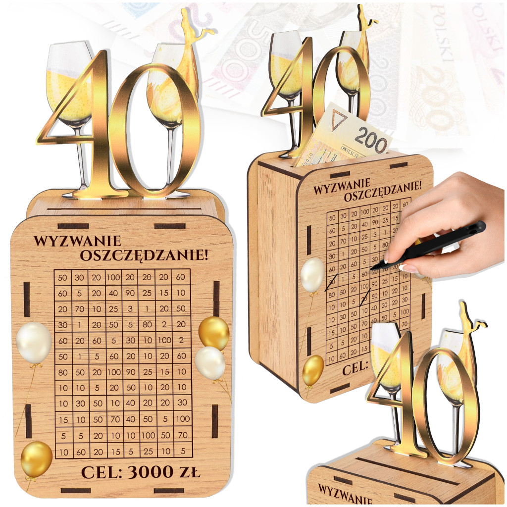 Stylowa drewniana skarbonka, wykonana z najwyższej jakości materiałów, to nie tylko praktyczny sposób na oszczędzanie, ale także wyjątkowy prezent na 40-ste urodziny. Dzięki możliwości wykreślania oszczędności, każdy krok w stronę celu staje się motywującą przyjemnością!