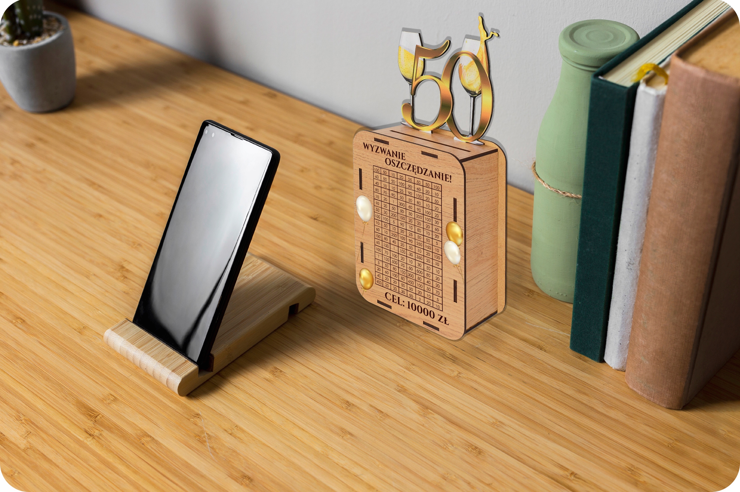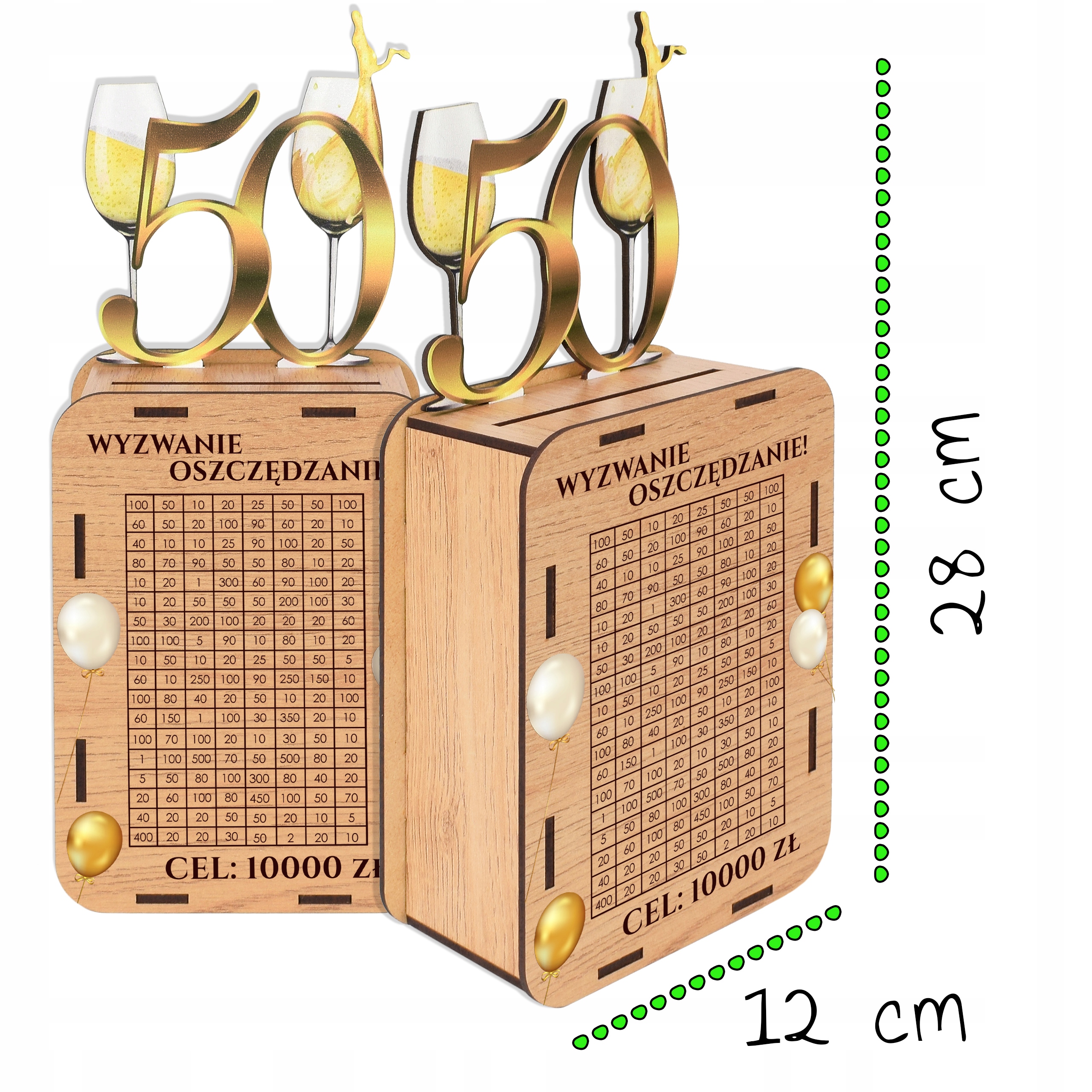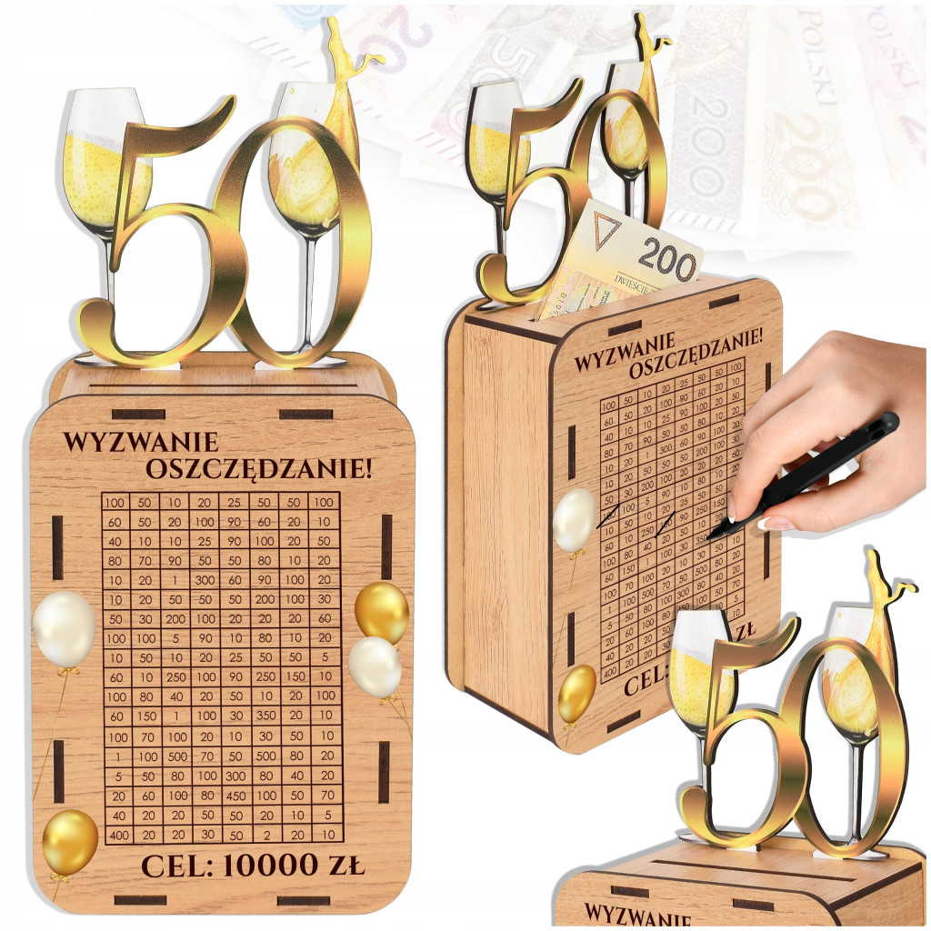 Stylowa drewniana skarbonka, wykonana z najwyższej jakości materiałów, to nie tylko praktyczny sposób na oszczędzanie, ale także wyjątkowy prezent na 50-te urodziny. Dzięki możliwości wykreślania oszczędności, każdy krok w stronę celu staje się motywującą przyjemnością!