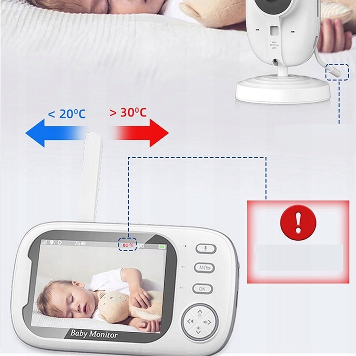 ????????Funkcja interkomu i alarm temperatury: niania z kamerą redukuje ewentualne zakłócenia dźwięku. Rozmowa przez monitor bezpośrednio z dwukierunkowym systemem audio pozwala pocieszyć dziecko lub komunikować się ze zwierzęciem bez konieczności wstawania. Gdy dziecko płacze, można odtworzyć 8 wbudowanych kołysanek, aby je uspokoić na odległość. Funkcja wykrywania temperatury może również przypominać, czy temperatura w pomieszczeniu jest odpowiednia dla dziecka.????????️????
