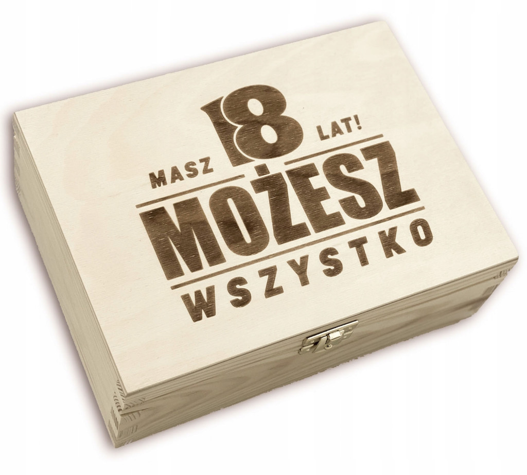 Darilna škatla za 18. rojstni dan je popolno darilo za praznovanje pomembnega mejnika v življenju vaših najbližjih. To prefinjeno pudelek-niezbędnik, izdelan iz trdnega borovega lesa v naravni barvi, je napolnjen z lesno volno in okrašen z izrezljanim vzorcem. Dimenzije 22 x 16 x 8 cm zagotavljajo dovolj prostora za osebno posvetilo in dodatke za praznovanje. V kompletu so vključeni pudelek z dekorativno zaponko, gravura po vaši izbiri, priložena tablica z željami (možnost lastnega besedila), ter 5 okrasnih kroglic z vgraviranim besedilom. Na voljo je več motivov za izbiro, ki vam omogočajo, da prilagodite darilo posebnemu prazniku. Darilna škatla za 18. rojstni dan je odličen način, da izrazite svoje dobre želje in pokažete svojo pozornost do solenizanta. Pripravite se na posebno praznovanje s tem izjemnim darilom!