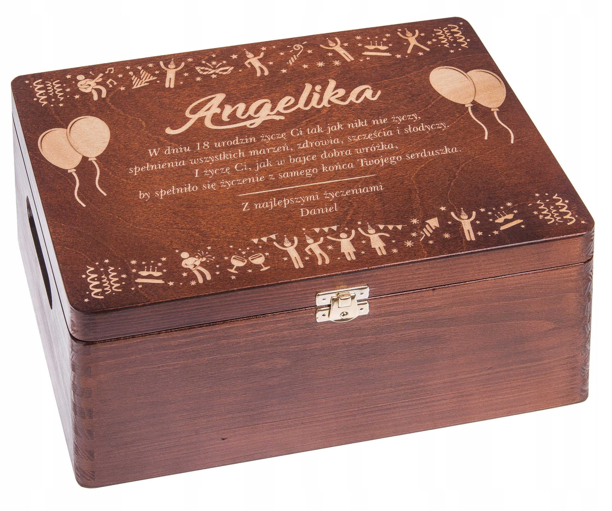 Dokładnie wykonana skrzynka drewniana z dedykacją! :)