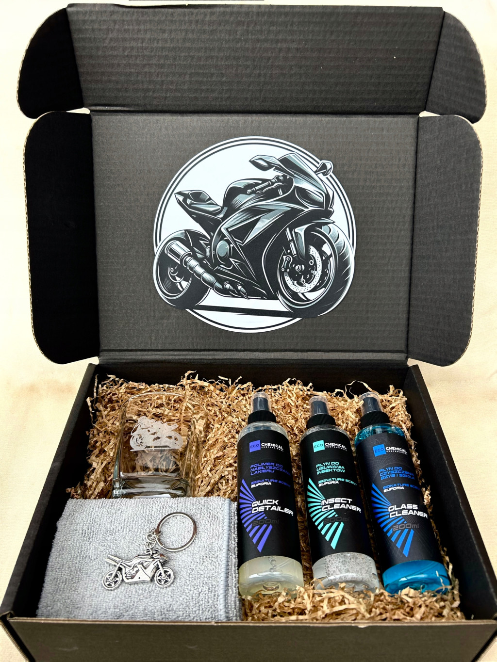 Nasz giftbox to nie tylko praktyczny, ale i elegancki prezent, który sprawi radość każdemu miłośnikowi motocykli. Zamów już dziś i zaskocz bliską osobę wyjątkowym prezentem!