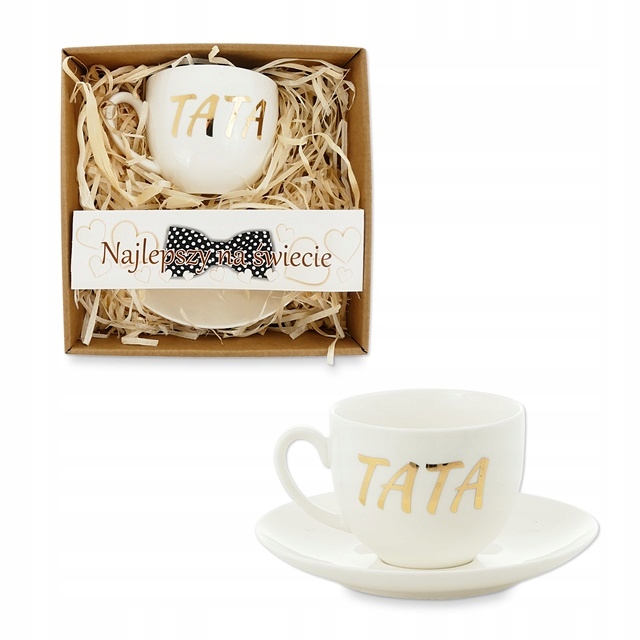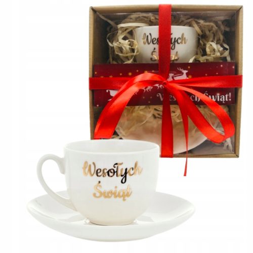 Porcelanowa filiżanka ze spodeczkiem o pojemności 220 ml, ozdobiona luksusowym złotym nadrukiem.