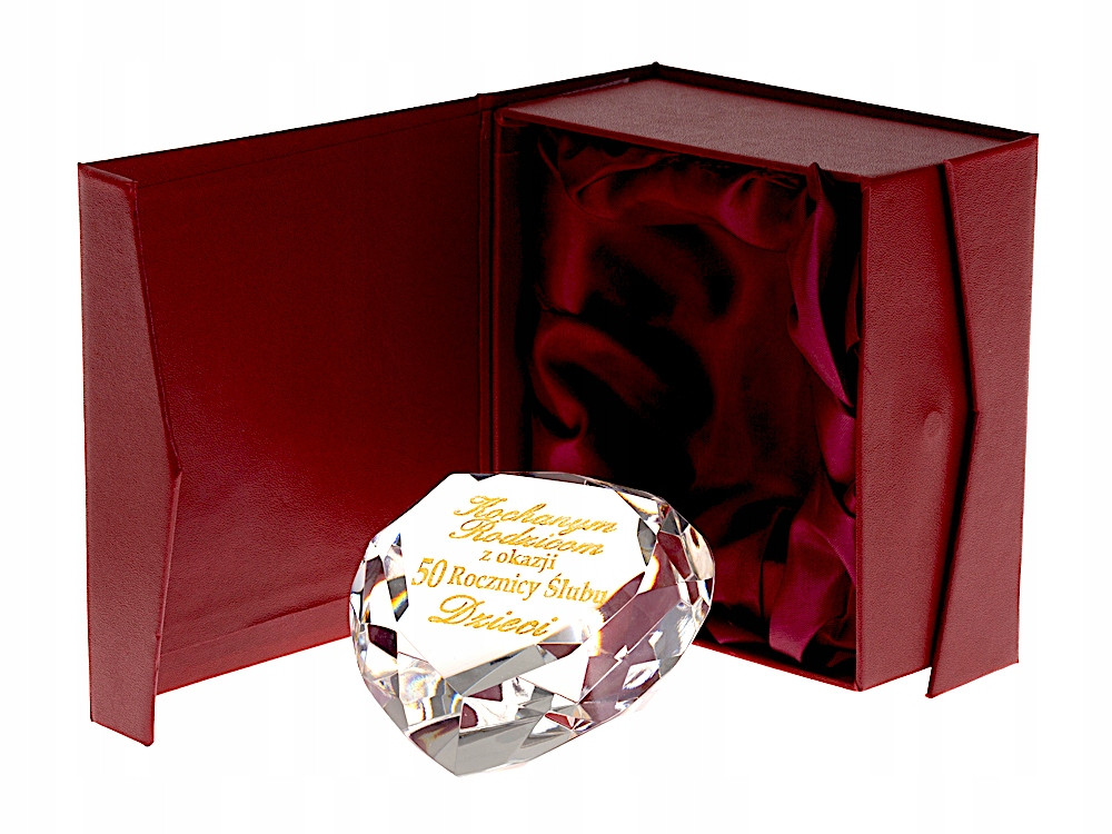 Mamy do zaoferowania ekskluzywne podziękowania dla rodziców w formie grawerowanej i ręcznie złoconej kryształowej statuetki w kształcie leżącego serca. Kryształ ma aż 40 mm grubości! Jest dodatkowo ręcznie złocony lub srebrzony przez rzemieślnika. To nasz oryginalny pomysł na prezent dla Rodziców czy na każdą inną okazję. Do kompletu dołączone jest bordowe etui z bordową satyną dopełniające całości. PRODUKT JEST RĘCZNIE WYKONANY co sprawia że każda statuetka jest niepowtarzalna.