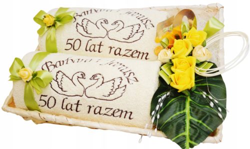 Zapraszamy do zakupu pięknie dekorowanego kosza, w skład którego wchodzi komplet 2 grubych, kąpielowych ręczników z Twoimi indywidualnymi haftami.