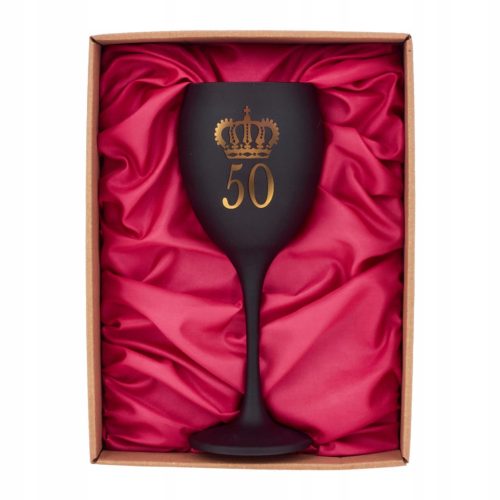 Elegancki, matowy kieliszek do wina udekorowany pięknym grawerem z okazji 50 Urodzin. Doskonały prezent na wyjątkową okazję. Zapakowany w kartonowe pudełko, wypełnione satyną w kolorze różowym. Idealny sposób na celebrowanie tego wyjątkowego momentu w życiu.