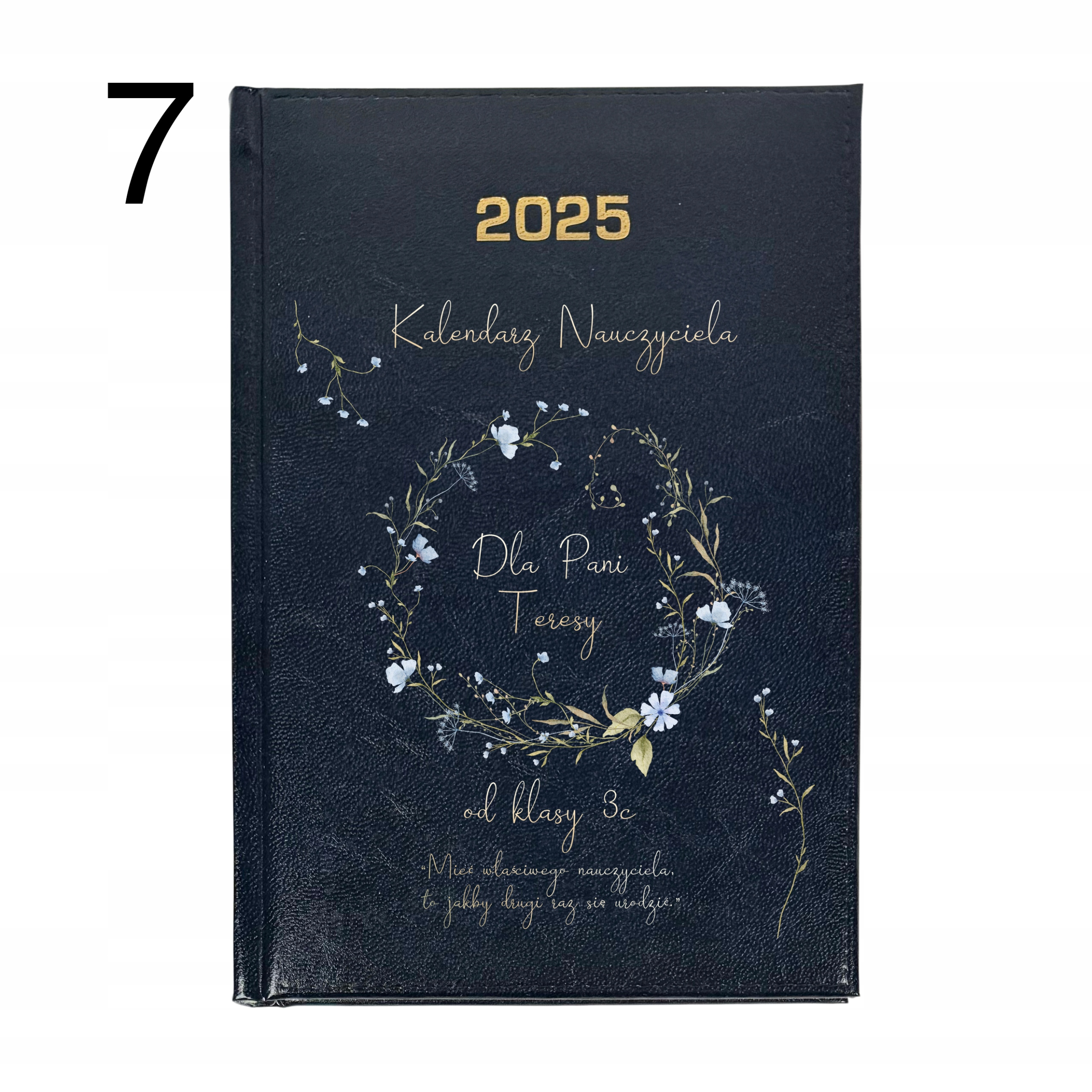 ✅ jednobarwna okładka ze skóry ekologicznej ze złotym przetłoczeniem roku
