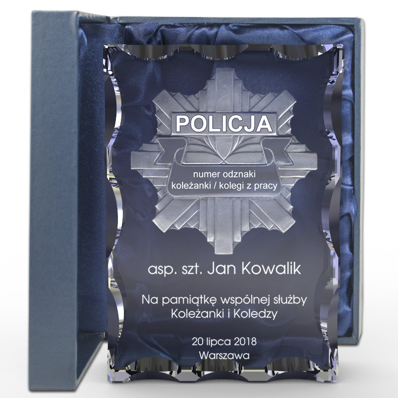 TRÓJWYMIAROWY model odznaki z indywidualnym numerem policyjnym oraz wysokiej jakości grawer to niepowtarzalny prezent dla policjanta odchodzącego na emeryturę.