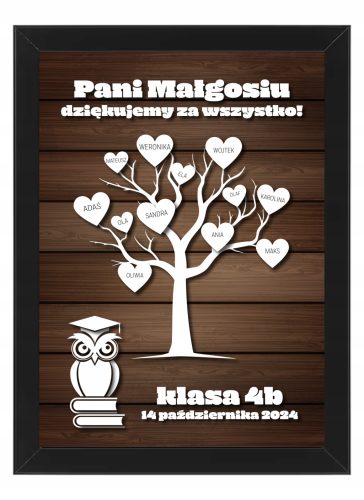 Wyjątkowa ramka z personalizowaną grafiką i imionami wszystkich uczniów, to na pewno idealny pomysł na upominek dla nauczyciela. Podaruj mu wyjątkowy prezent z okazji Dnia Nauczyciela.