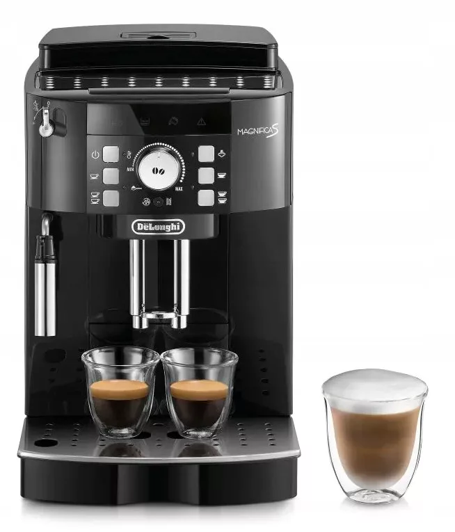 Napoje na bazie kawy za naciśnięciem przycisku System Twin-Shot umożliwia jednoczesne zaparzenie 2 filiżanek espresso. Kremowa pianka z mleka z ręczną regulacją spieniacza do mleka. Konfigurowalny aromat i ilość Czarny błyszczący korpus ze srebrnymi detalami i miękkimi w dotyku przyciskami z cyfrowym wyświetlaczem