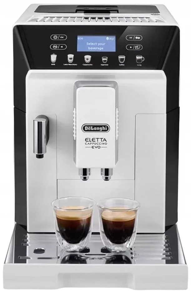Ekspres ciśnieniowy automatyczny DeLonghi Elleta Cappucicino Evo ECAM46.860.W o mocy 1450W i ciśnieniu 15 bar.