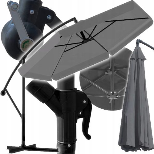 Wyposażony w mechanizm korbowy. Szybkie składanie/rozkładanie parasola.
