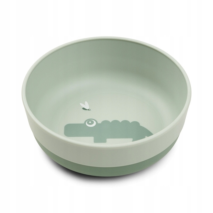 Zielona miska Foodie ma nadruk z ślicznym motywem serdecznego krokodyla Croco wpatrującego się w kilka świetlików. Jej jedwabiście matowa powierzchnia pasuje do reszty kolekcji Foodie. Ciemniejsza zieleń podstawy dodaje ładnego dwukolorowego detalu.