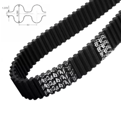 Pasy obustronnie zębate MEGADYNE to wysokowydajne pasy, które są rezultatem konsekwencji w dążeniu do rozwoju technologii i ogromnego doświadczenia przy produkcji pasów napędowych. Specjalnie opracowany okrągły kształt zęba zapewnia lepsze dopasowanie do koła pasowego, cichszą pracę oraz wysoką wydajność. Przekłada się to również na wytrzymałość pasków. Pokrywająca zęby tkanina nylonowa zwiększa wytrzymałość na ścieranie oraz wydłuża żywotność. Pasy dostępne również w wersji wzmocnionej, które nadają się do napędów o mocy nawet 1000 kW.