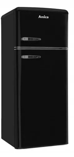 Chłodziarko-zamrażarka wolnostojąca z zamrażalnikiem na górze w kolorze czarnym.