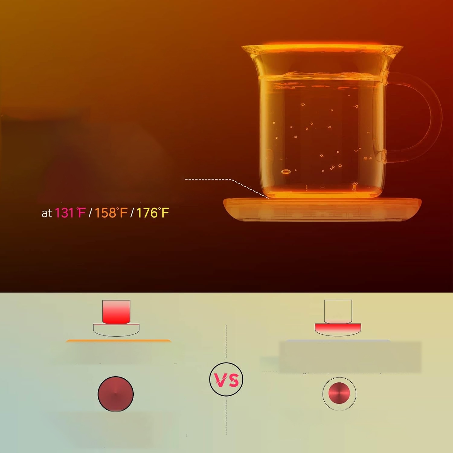 ♨️Podgrzewacz ma średnicę 3,5 cala i pasuje do większości kubków, takich jak szkło, stal nierdzewna, ceramika itp.