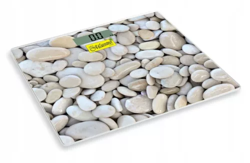 Elektroniczna waga łazienkowa o maksymalnym obciążeniu 150kg, zasilania 2 bateriami AAA.