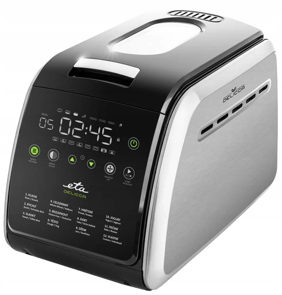Automatyczny wypiekacz do chleba ETA Delicca z 12 trybami pracy, dzięki którym możesz upiec chleb, ale także zrobić domowy dżem czy jogurt.