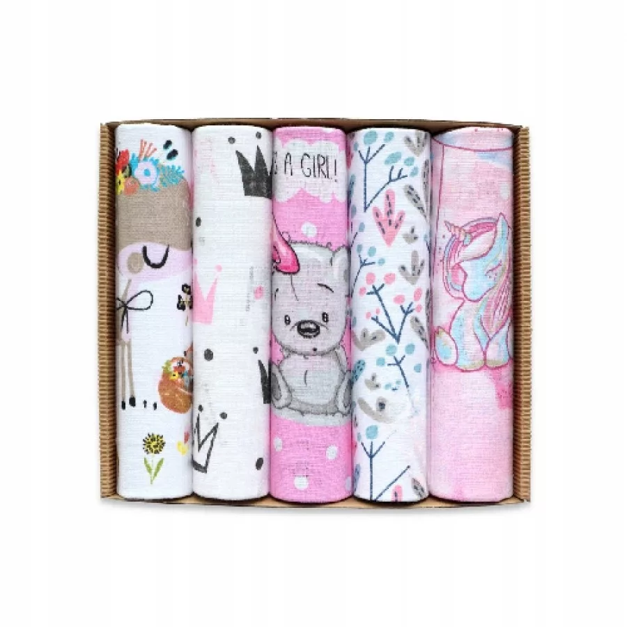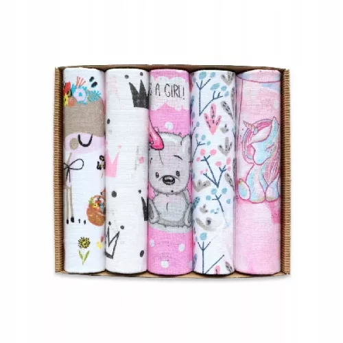 Zestaw miękkich, chłonnych pieluszek w kolorowe wzorki. Idealne dopełnienie wyprawki.