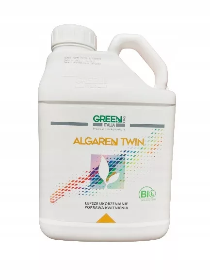 ALGAREN TWIN jest płynnym organicznym nawozem pochodzenia całkowicie naturalnego, zawierającym wyciągi z drożdży i brunatnych alg morskich Ecklonia maxima – jest algą występującą na półkuli południowej, zbieraną w stadium dojrzewania, w której stosunek stężenia auksyny jest maksymalny względem cytokininy. ALGAREN TWIN utrzymuje niezmienioną zawartość składników w szczególności: naturalnych auksyn, naturalnych cytokinin, witamin z grupy B i mikroelementów. Dzięki odżywczemu działaniu i szczególnej proporcji pomiędzy auksynami i cytokininami, pobudza roślinę do wydzielania cytokinin endogenicznych, które wspomagają rozwój systemu korzeniowego oraz przygotowuje roślinę do obfitego kwitnienia i zawiązywania owoców.