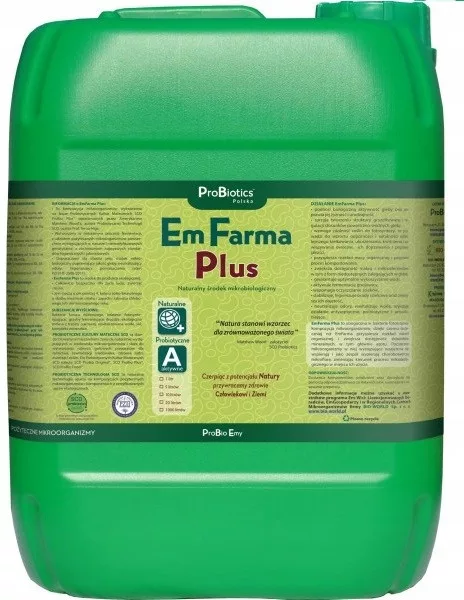 EmFarma Plus™ to wzbogacona w bakterie fototropowe kompozycja mikroorganizmów, dzięki czemu skuteczniej niż EmFarma™ przyspiesza rozkład materii organicznej i zwiększa dostępność składników mineralnych, w tym głównie azotu. Pożyteczne mikroorganizmy w niej występujące wzajemnie się wspierają i jako zespół wypierają chorobotwórczą mikroflorę, zmieniając kierunek procesu mikrobiologicznego na regenerujący albo rewitalizujący w miejscu ich użycia.