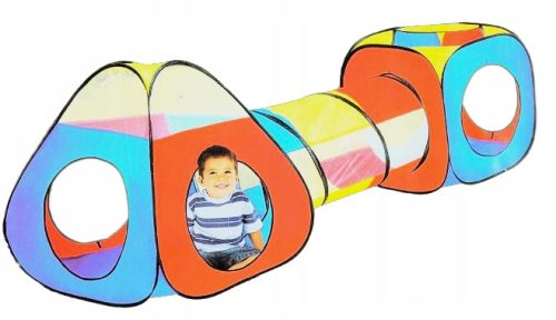 WIELOFUNKCYJNY – dzięki trzem połączonym częściom, może służyć jako namiot, tor przeszkód bądź element placu zabaw; posiada wiele wejść/wyjść, co dodatkowo uatrakcyjnia zabawę.