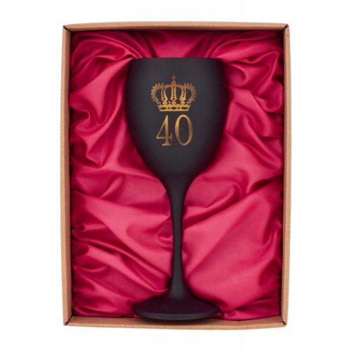 Elegancki, matowy kieliszek do wina udekorowany pięknym grawerem z okazji 40 Urodzin. Doskonały prezent na wyjątkową okazję. Zapakowany w kartonowe pudełko, wypełnione satyną w kolorze różowym. Idealny sposób na celebrowanie tego wyjątkowego momentu w życiu.