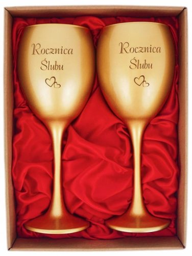Elegancki komlet 2 kieliszków do wina w kolorze MATOWYM-ZŁOTYM, udekorowany delikatnym grawerem „25 Rocznica Ślubu". Doskonały prezent na wyjątkową okazję.