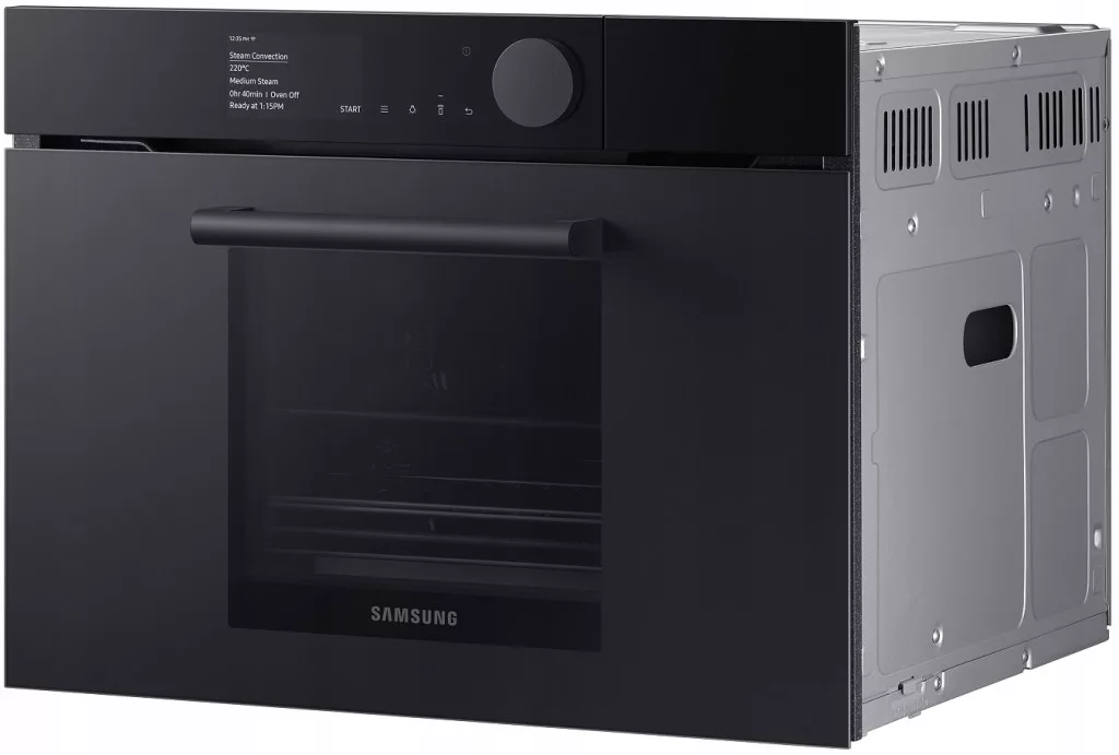 Kompaktowy piekarnik parowy Infinite Line o pojemności 50l, wykończenie w satynowym graficie, prawdziwe gotowanie parowe, intuicyjna kontrola za pomocą dotykowego wyświetlacza i wygodnego pokrętła, łączność z aplikacją SmartThings.