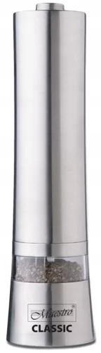 Młynek do pieprzu i soli Maestro MR-1722 to idealne rozwiązanie dla każdej kuchni. Wyposażone w funkcję regulacji grubości mielenia, pozwala na dostosowanie grubości soli lub pieprzu do Twojego smaku - niezależnie czy preferujesz drobno zmielone czy grubsze kawałki. Napędzany jest przez 6 baterii typu AAA, co gwarantuje długotrwałe, nieprzerwane użytkowanie. Co więcej, ceramiczne żarna zapewniają skuteczne i precyzyjne mielenie, zachowując przy tym pełnię smaku i aromatu dodawanych przypraw. Młynek został wykonany z wysokiej jakości stali, co nie tylko zapewnia jego trwałość ale także nadaje mu eleganckiego, nowoczesnego wyglądu. Idealnie dopasuje się do każdego typu kuchni, od tradycyjnych po te urządzone w stylu industrialnym.