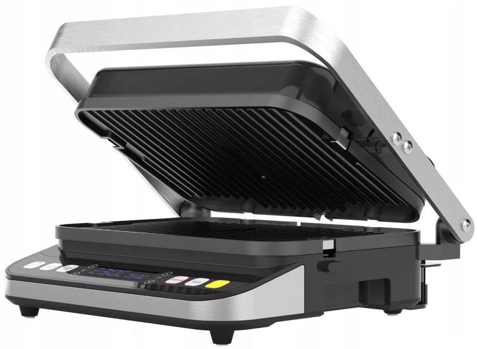 Grill wyposażony jest w cyfrowy wyświetlacz i lampki kontrolne, które zmieniają swój kolor w zależności od etapu gotowania.