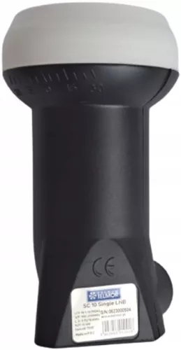 Telkom-Telmor SC 10 Single LNB to profesjonalny konwerter satelitarny o wzmocnieniu 70dB. Wyposażony w uchwyt o średnicy 40mm, charakteryzuje się niskim współczynnikiem szumów 1dB. Filtrowanie sygnałów 5G/LTE/GSM gwarantuje czysty obraz.