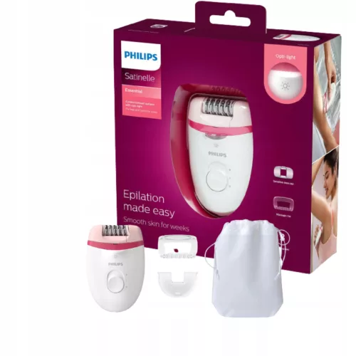 Depilator marki Philips. Posiada ergonomiczny uchwyt oraz głowicę depilującą z możliwością mycia.