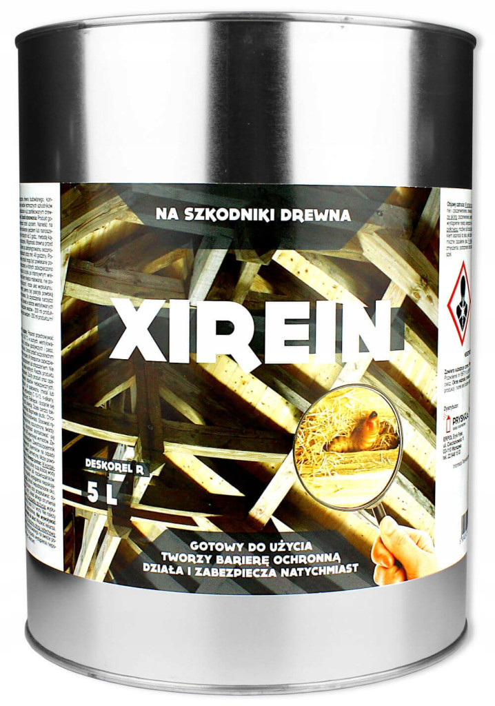 Owadobójczy preparat XIREIN do zwalczania drewnojadów i przeciwdziałania pojawianiu się larw szkodników drewna. Preparat zwalcza oraz zabezpiecza przed najczęściej spotykanymi szkodnikami, m.in.: kołatkami (Anobium sp), spuszczelami (Hylotrupes bajulus), miazgowcami (Lyctus sp), trzpiennikami (Urocerus gigas) i innymi. Preparat jest dla owadów żerujących w drewnie silną trucizną. Niszczy żerujące larwy poprzez bezpośrednie oddziaływanie substancji czynnej - permetryny - na ich układ pokarmowy.