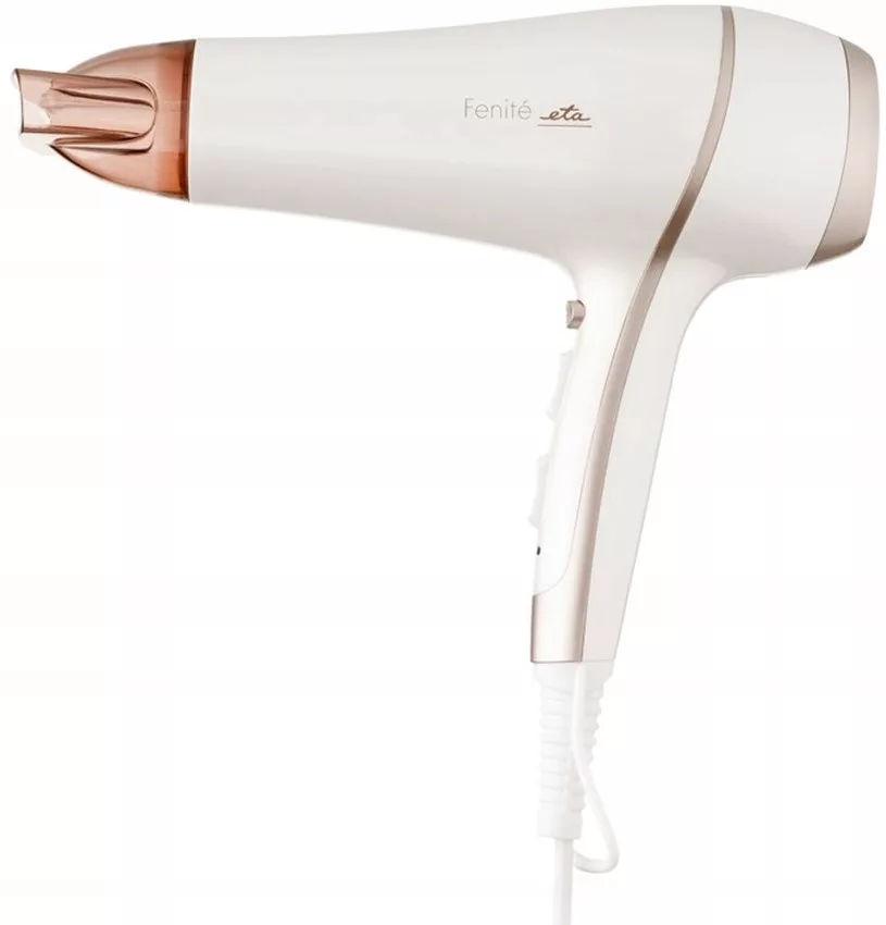 Eta Fenite ETA732090000 o mocy 2400W, Funkcją COLD AIR SHOT umożliwia szybkie ochłodzenie i utrwala fryzurę, 3 stopnie ustawienia temperatury, 2 prędkości nadmuchu, 2 nasadki: koncentrator i dyfuzor.