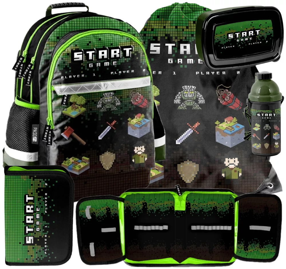 Najmodniejszy plecak szkolny dla chłopaka z najnowszej kolekcji Paso. Jest lekki i pojemny, rozmiarem dopasowany dla uczniów szkół podstawowych. Oryginalna czarno-zielona kolorystyka stanowi harmonijną całość i zachwyca małych klientów. Z przodu grafika z motywem Pikseli. Dedykowany jest dla fanów gier komputerowych.