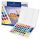Farby akwarelowe na paletce z tworzywa z uchwytem na palec. Intensywne, czyste kolory są całkowicie rozpuszczalne w wodzie i ułatwiają mieszanie barw. W zestawie praktyczny pędzelek akwarelowy z wbudowanym pojemnikiem na wodę.