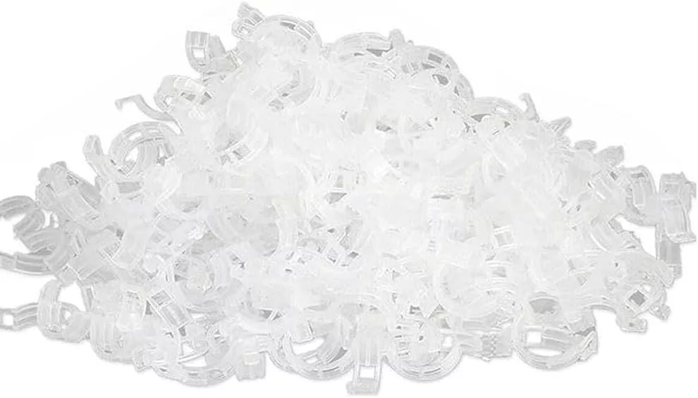 Ochrona roślin Nasze klipsy do roślin zapewniają dobrą ochronę roślin i wzrostu roślin. Chroń swoje delikatne kwiaty i winorośl przed wiatrem i deszczem. Prostuje rośliny zapobiega zginaniu się owoców lub winorośli oraz wspomaga wzrost roślin. Nadaje się do pionowego ogrodnictwa i małych ogrodów przydomowych. Klips do mocowania roślin Klips do mocowania roślin jeden klips o wielu zastosowaniach dobry do szczepienia wiązania winorośli i zawieszania. Te klipsy do roślin są idealne do mocowania papryki arbuzów i innych warzyw i owoców do zawieszania drutów. Może być również używany do wiązania i mocowania łodyg roślin po ich wynurzeniu aby zapobiec ich złamaniu lub posiniaczeniu. Klips podtrzymujący roślinę Naciśnij przycisk blokujący. Klipsy podtrzymujące rośliny są łatwe w montażu i zdejmowaniu. Zapewniają dobre wsparcie i są bardzo łatwe w użyciu. Świetne rozwiązanie dla winorośli pomidorów. Świetnie nadaje się do szczepienia roślin cięcia gałęzi z jednej rośliny na drugą i uprawy gałęzi na roślinach. Unikalny design Proszę odnieść się do rozmiaru na zdjęciu. Wydrążona konstrukcja zapewnia cyrkulację powietrza i wspomaga wzrost roślin. Klips do siatki na rośliny ma szybko otwieraną konstrukcję która jest wygodna do przenoszenia lub ponownego użycia jest łatwa w montażu i demontażu dzięki czemu chusta nie zostanie uszkodzona po wielokrotnym użyciu. Klips do roślin pnących Niezbędne narzędzie ogrodnicze. Klipsy do roślin pnących są luźno przymocowane dzięki czemu sama winorośl nie zostanie uszkodzona podczas wzrostu. Wykonany jest z tworzywa sztucznego PP klips do roślin może bezpiecznie trzymać łodygi i sadzonki aby wspierać paliki idealny do fasoli i roślin.