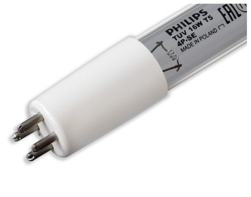 Promiennik T5 UV-C TUV o mocy 16W (średnica świetlówki T5 - 16mm), z jednostronnym trzonkiem 4-pinowym z oznaczeniem 4P-SE (4P SE).
