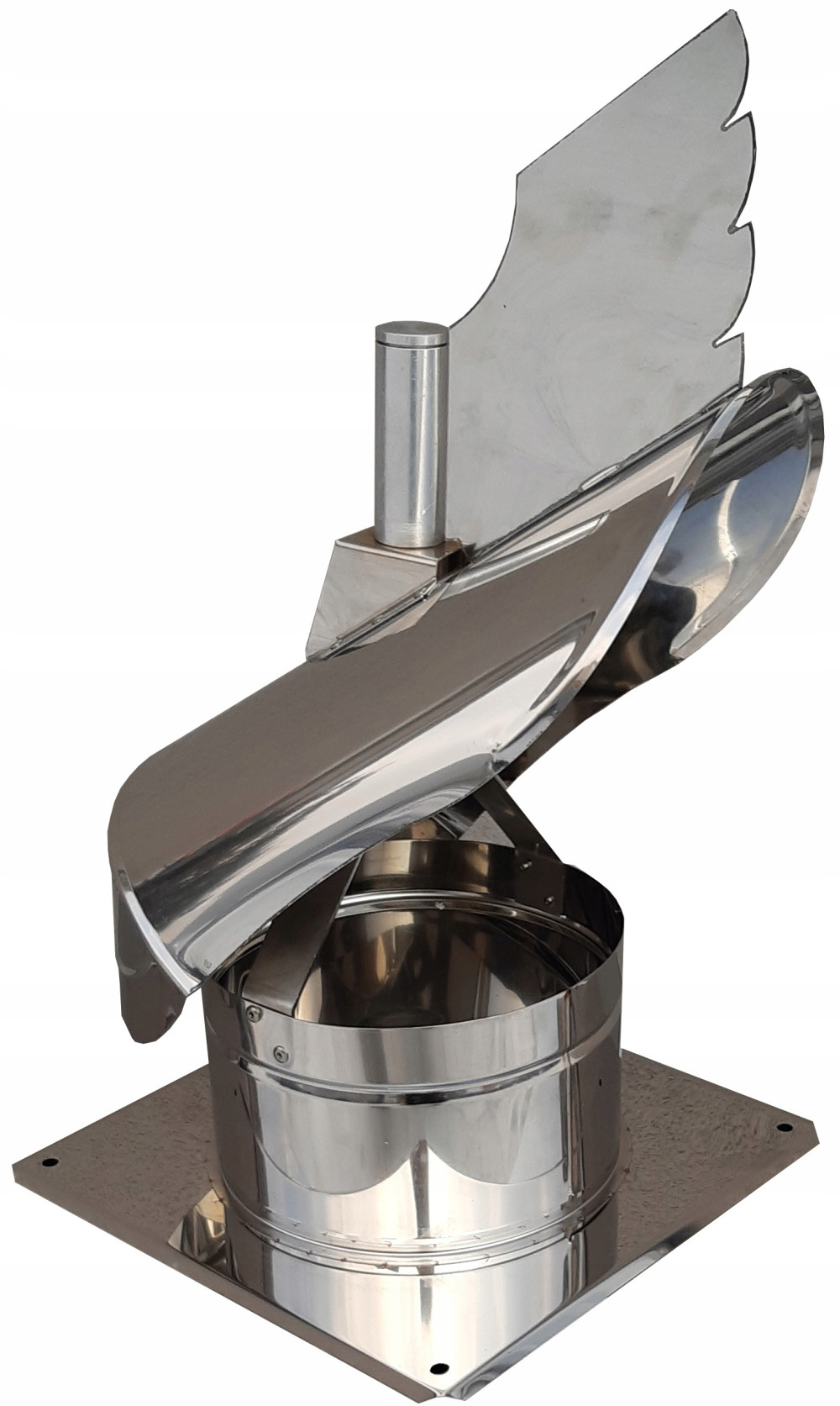 Montuje się go na wylotach kominowych opalanych paliwem stałym, wentylacji grawitacyjnej, szczególnie w budownictwie jedno i wielorodzinnym. Produkt nowy, pracujący bardzo cicho i dodatkowo zabezpieczający przed opadami atmosferycznymi.