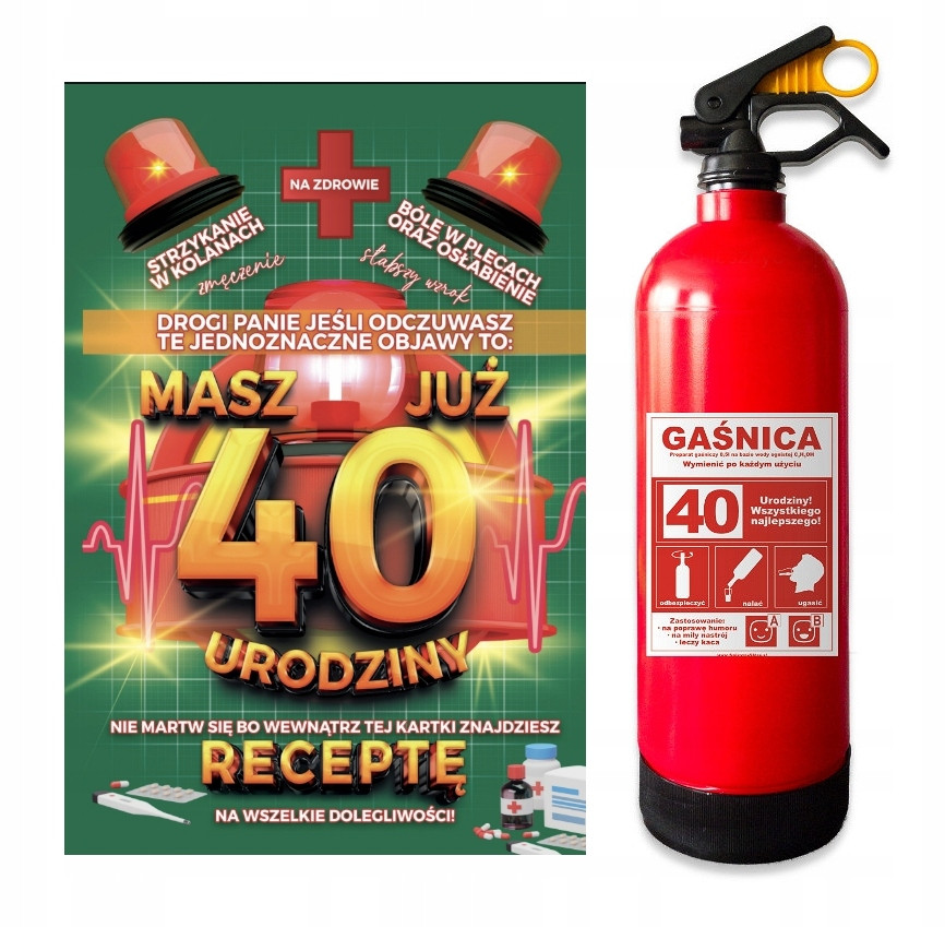 Karnet z receptą i gaśnica - 40 Urodziny dla mężczyzny