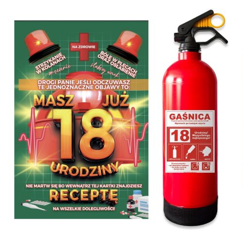 Karnet z receptą i gaśnica - 18 Urodziny dla mężczyzny