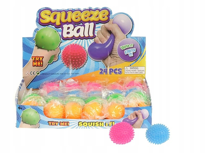 piłeczki, gniotki z wypustkami, śred 5,5cm, display 24szt; 35x22x6cm, Box