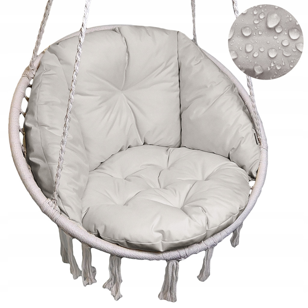 ✅ Poduszka składa się z dwóch elementów integralnie ze sobą połączonych (oparcia z bocznymi skrzydłami oraz siedziska w kształcie koła o średnicy 60 cm), zszytych w spójną całość. Dzięki temu poduszka idealnie wypełnia wnętrze huśtawki i sprawia, że wypoczynek na niej to prawdziwa przyjemność.