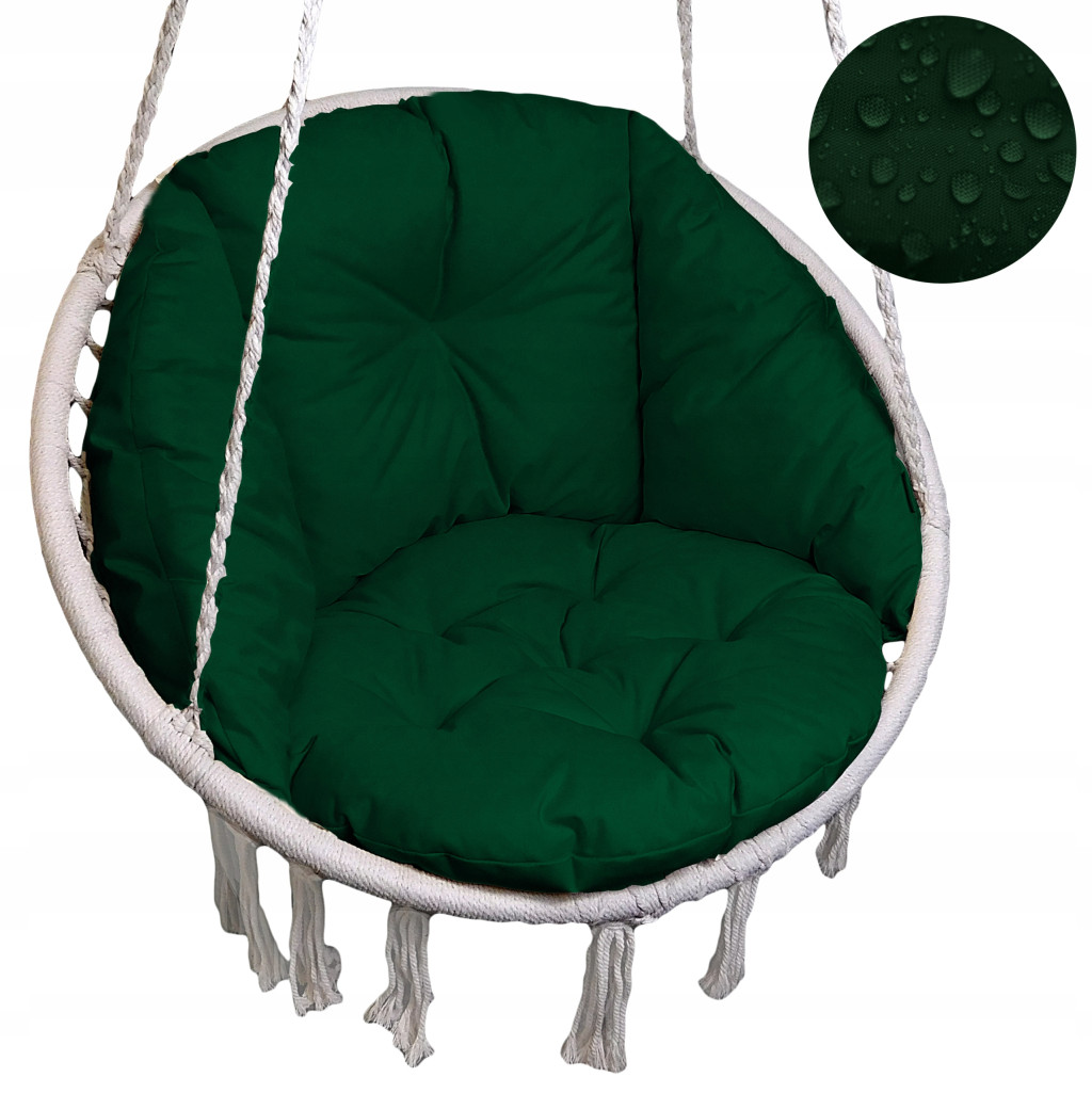 ✅ Poduszka składa się z dwóch elementów integralnie ze sobą połączonych (oparcia z bocznymi skrzydłami oraz siedziska w kształcie koła o średnicy 60 cm), zszytych w spójną całość. Dzięki temu poduszka idealnie wypełnia wnętrze huśtawki i sprawia, że wypoczynek na niej to prawdziwa przyjemność.
