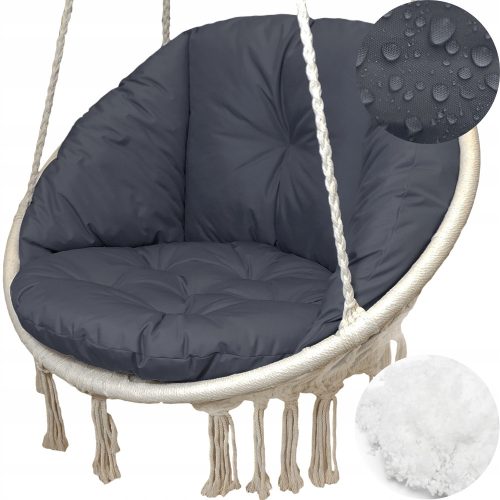✅ Poduszka składa się z dwóch elementów integralnie ze sobą połączonych (oparcia z bocznymi skrzydłami oraz siedziska w kształcie koła o średnicy 60 cm), zszytych w spójną całość. Dzięki temu poduszka idealnie wypełnia wnętrze huśtawki i sprawia, że wypoczynek na niej to prawdziwa przyjemność.