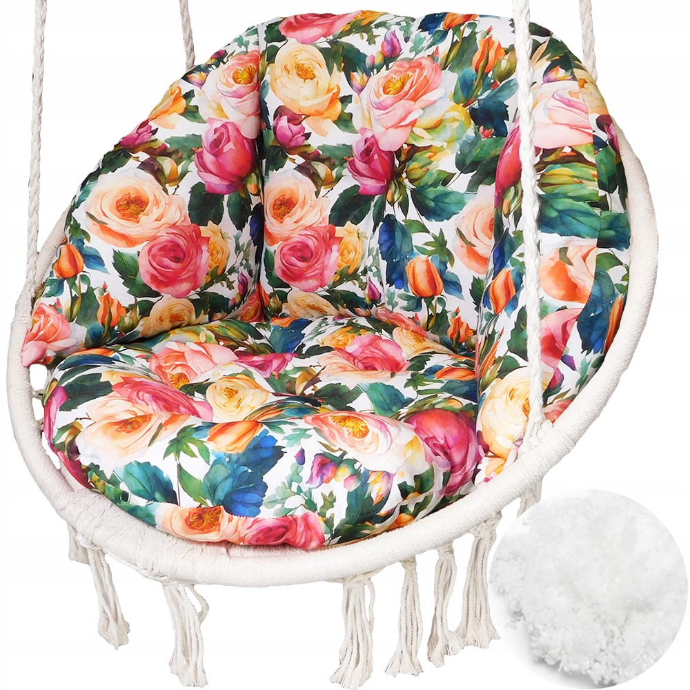✅ Poduszka składa się z dwóch elementów integralnie ze sobą połączonych (oparcia z bocznymi skrzydłami oraz siedziska w kształcie koła o średnicy 60 cm), zszytych w spójną całość. Dzięki temu poduszka idealnie wypełnia wnętrze huśtawki i sprawia, że wypoczynek na niej to prawdziwa przyjemność.