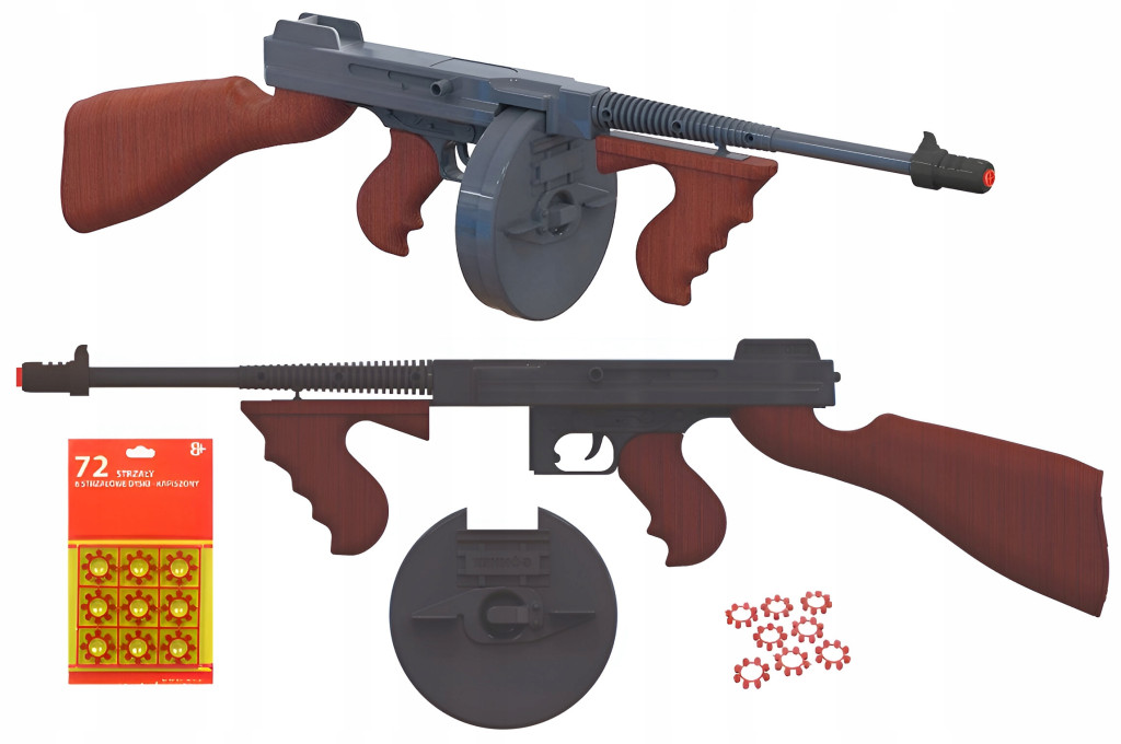 ✅ Realistyczny wygląd: Karabin został wykonany z dbałością o szczegóły, dzięki czemu doskonale oddaje wygląd prawdziwej broni gangsterskiej.