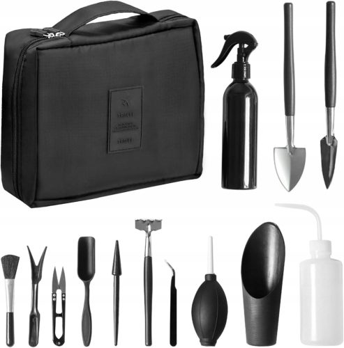 ✅ Idealne wyposażenie: Ten 13-częściowy zestaw narzędzi jest idealny dla początkujących oraz do pielęgnacji małych bonsai. Zawiera różne akcesoria, takie jak podnośnik do sadzonek, grabie, konewka oraz torba do przechowywania, zapewniając praktyczne rozwiązanie do pielęgnacji roślin.